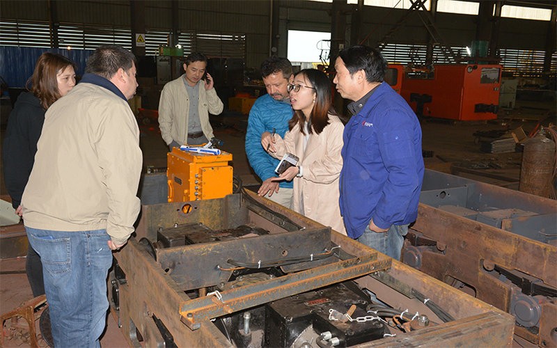 南美客戶來廠考察湘潭井下電機(jī)車的性能。
